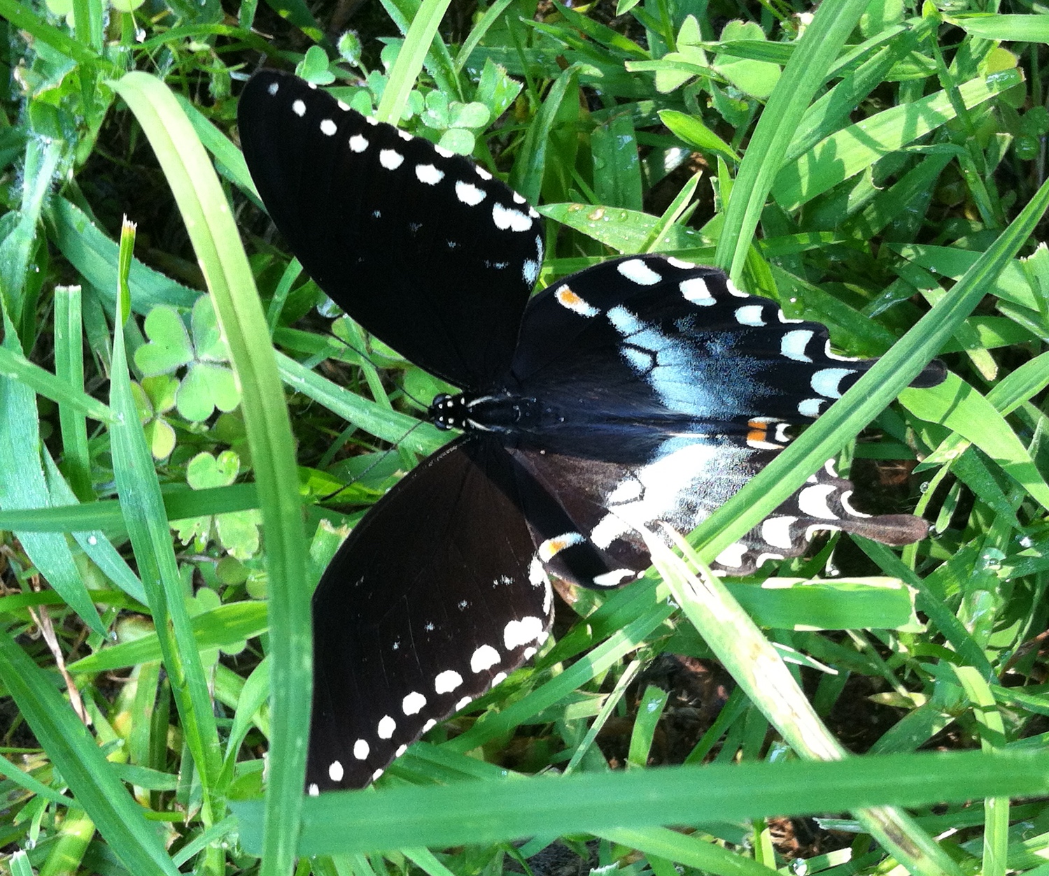 Here is a Spicebush Swallowtail caterpillar that my daughter found on my spicebush. Look at that little snakey face he’s trying to fool us with. Silly caterpillar.