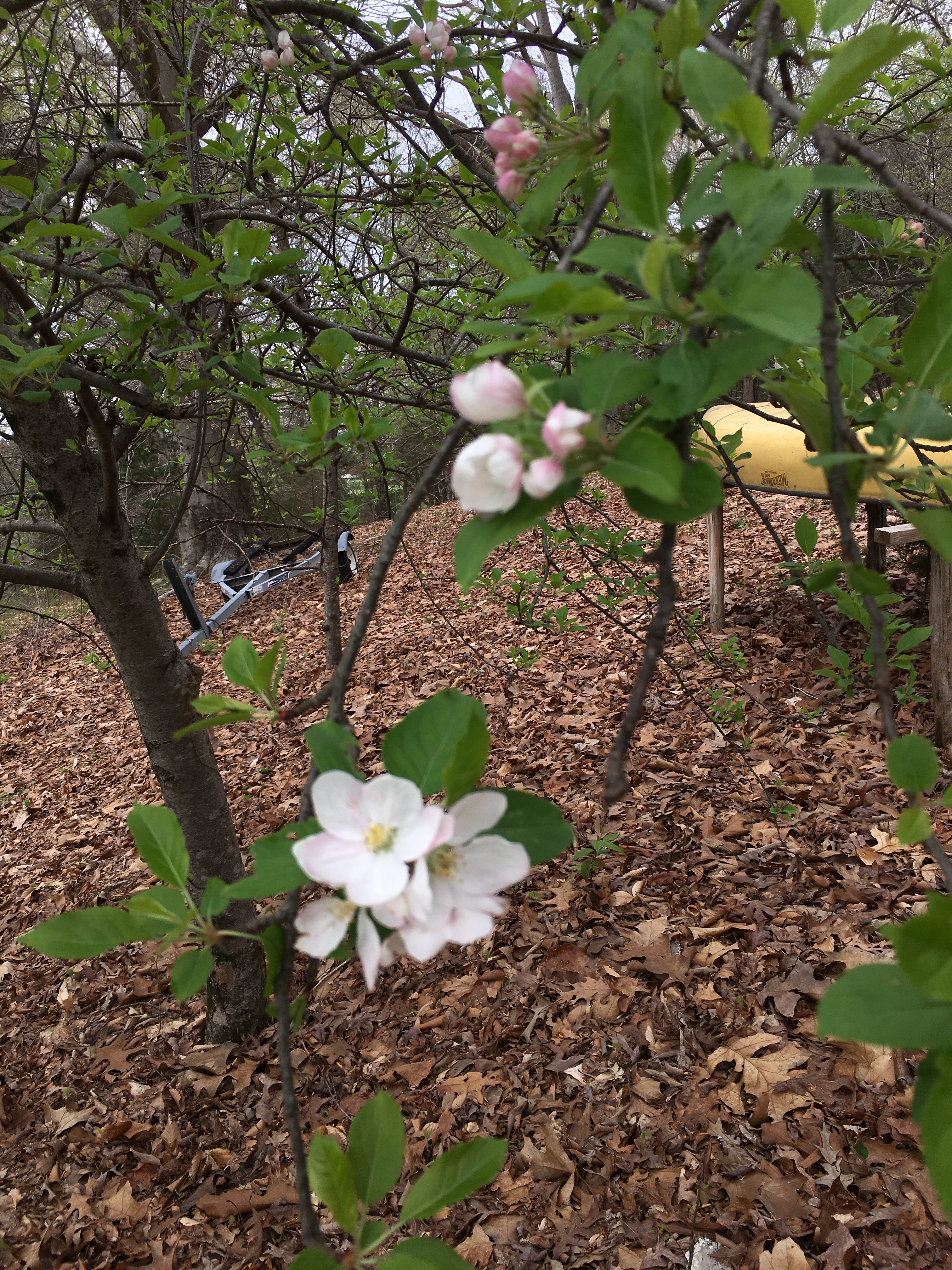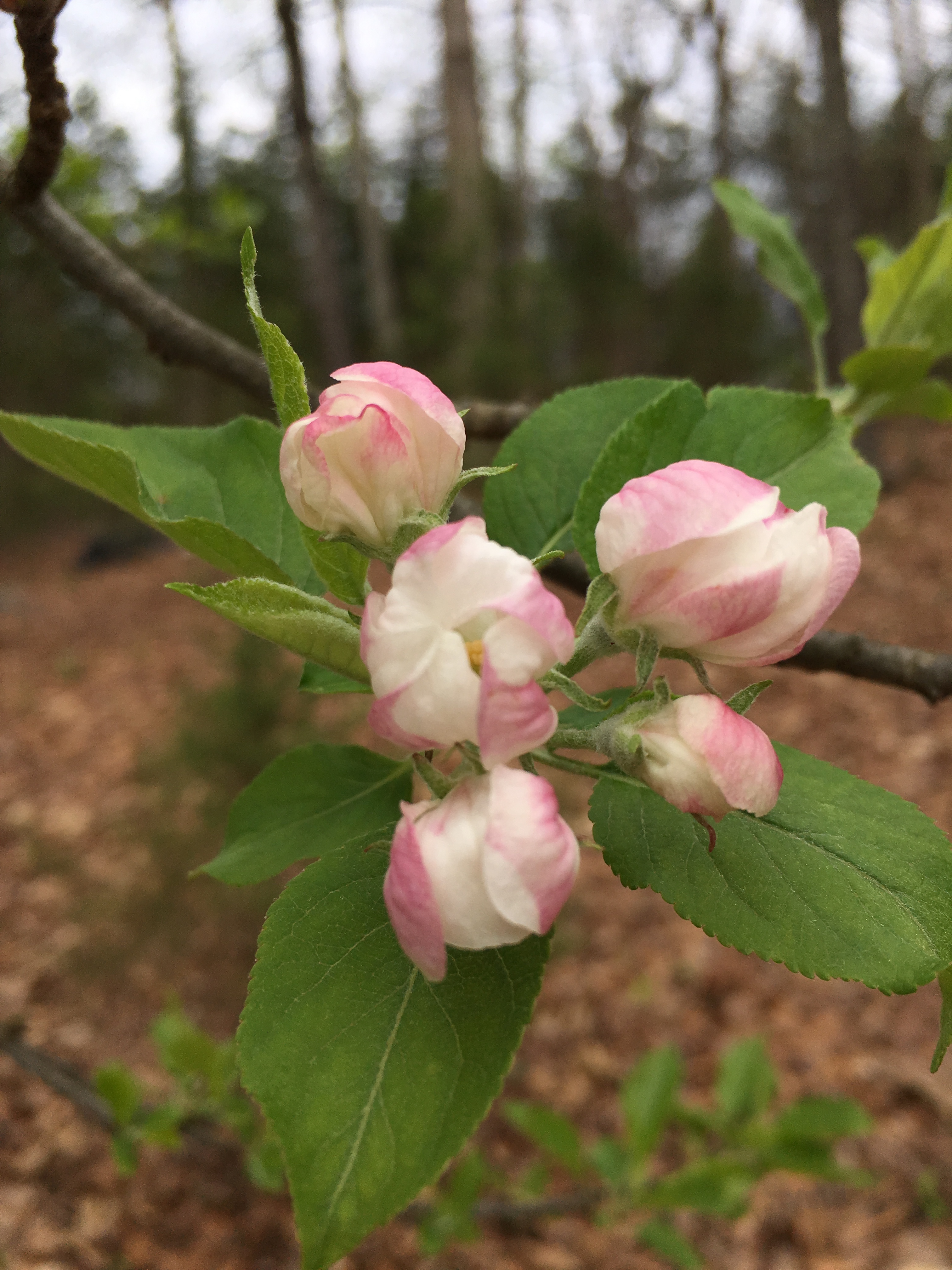 Enjoy! Aren’t they lovely? We probably won’t get any apples from them. Usually, the squirrels and deer beat us to them, but I still love knowing they’re there and enjoying the blossoms, and the squirrels and the deer.